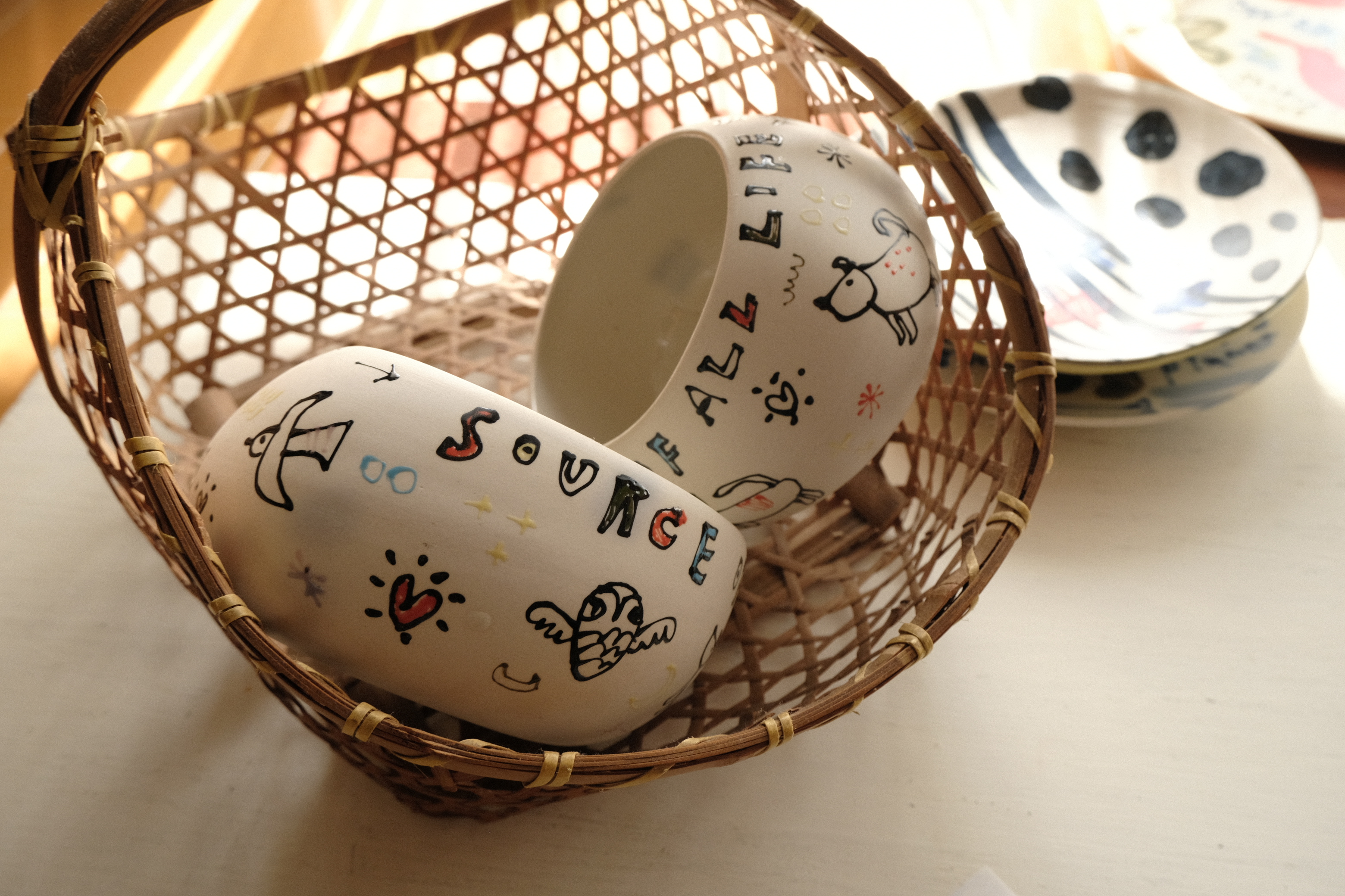 楕円でも変形でもなく、整ったたわんだフォルムが特徴の鉢。柔らかささえも感じる磁器の器です。子供の落書きのようなイッチンのイラストがポップ、どの角度からも楽しめます。楽しい明るい色付けも魅力。サラダボウルやどんぶりのような使い方でも楽しめますが、花器としても素敵に空間を彩ります。外側はカサッっとした手触り、中はツルっとした釉薬で汚れにくい仕上げです。